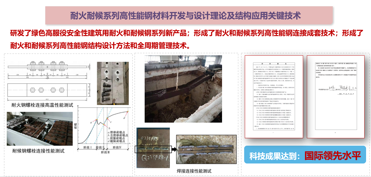 (2)高性能建筑結構鋼材應用關鍵技術:針對各類新型高性能建筑結構鋼材,包括高強結構鋼、耐火鋼、耐候鋼、不銹鋼、高效截面型鋼、縱向變截面鋼板、軋制金屬復合板、高性能大直徑高強耐候索及配套的連接材料,提出了材料、構件、連接節點和結構體系等的性能指標和設計理論及方法,提供面向工程應用的關鍵技術。